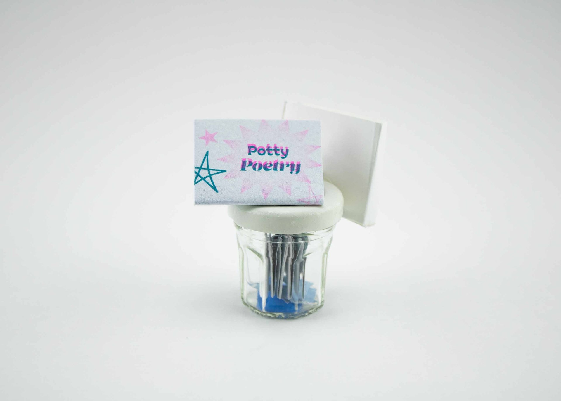 1"x1.5" Riso booklet, 1"x1" Star book, repurposed Bonne Maman jar